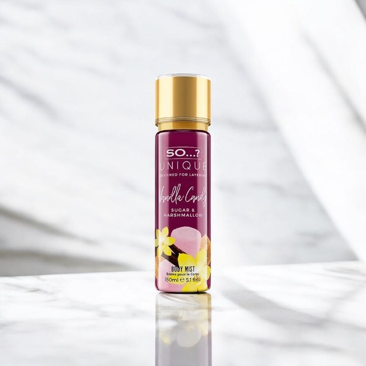 Avec BRUME POUR LE CORPS 150ML - SO…? UNIQUE - VANILLA CANDY, laissez un sillage délicat et inoubliable, empreint d’élégance et d’émotion. Ce parfum dévoile des notes harmonieuses qui évoluent au fil des heures, créant une signature unique et personnelle. Un indispensable du quotidien ou des grandes occasions.