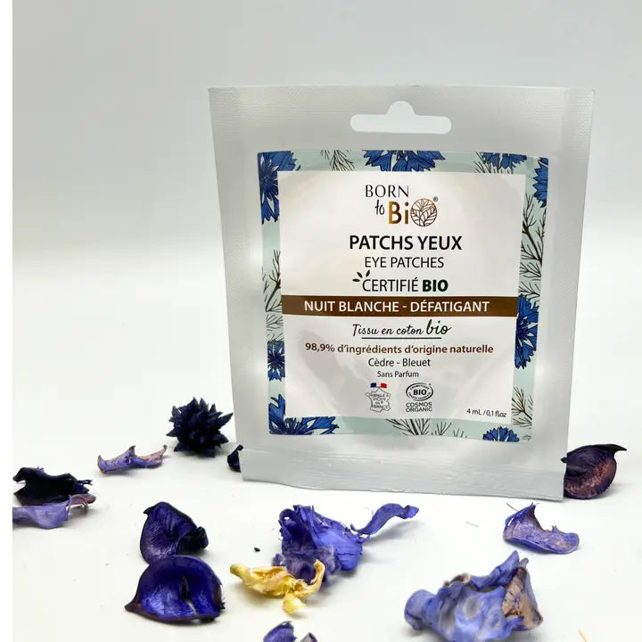 Patchs en tissu à base de cèdre et de bleuet pour les contours des yeux afin de lutter contre les signes de fatigue. Grâce aux propriétés protectrices et apaisantes de l'Extrait de Bleuet BIO Origine France et à la douceur de l'Eau florale de Bleuet BIO Origine France, le regard retrouve fraicheur et vivacité, comme une bonne nuit de sommeil ! Elle contient également un actif agissant sur les cernes à base d’Extrait d’écorce de Cèdre de l’Atlas Origine France. Formulation sans parfum pour préserver les peaux les plus sensibles. Ces patchs sont certifiés Bio par Ecocert et conçu en coton biologique.